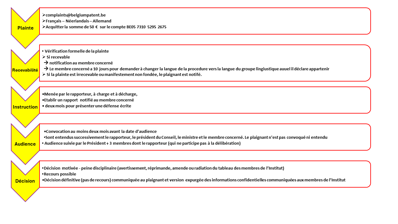 - Soit via courrier électronique à complaints@belgiumpatent.be